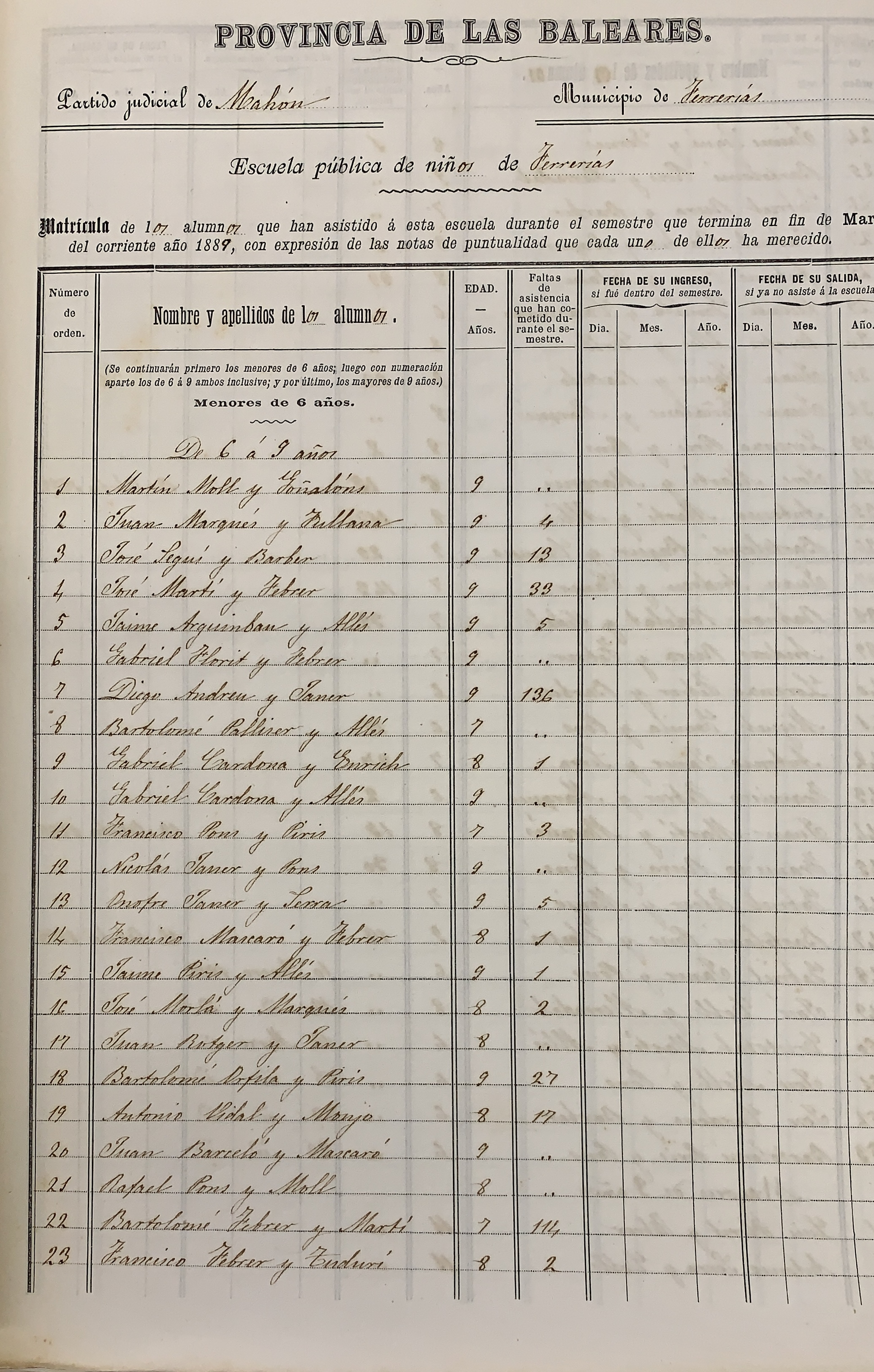 número 9 a la llista, quan tenia 8 anys.